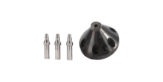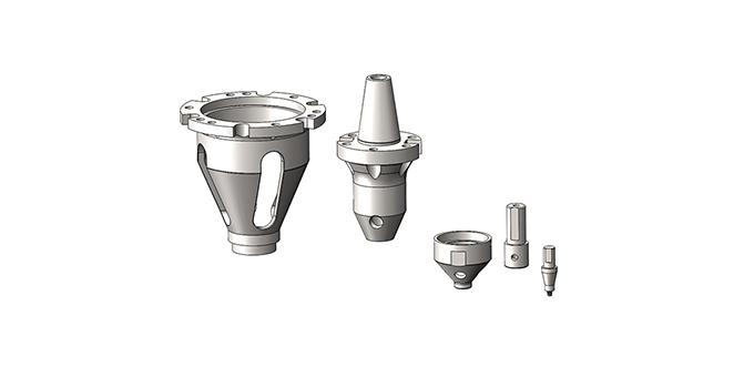 The bits (left) rotate while the shoulder (right) remains motionless, reducing the amount of excess heat generated by friction. This results in less thermal distortion of the pieces.